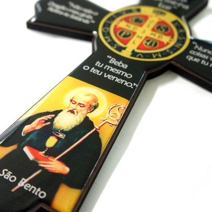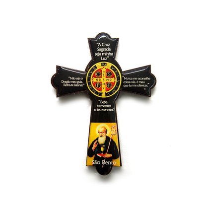 A Cruz sagrada seja a minha Luz. Não seja o dragão o meu guia. Retira-te satanás. Nunca me aconselhe coisas vãs. É do mal o que tu me ofereces. Beba tu mesmo do teu veneno. Rogai por nós Bem-Aventurado São Bento, para que sejamos dignos das promessas de Cristo.