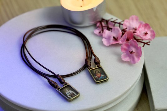 Escapulário Cordão Nossa Senhora do Carmo Pingente Metal Ouro Velho