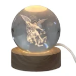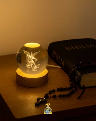 Esfera de vidro esculpida a lazer, com base de MDF e 6 LED´s de alta potência.